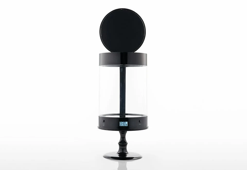 The Automatic Candle Extinguisher is the candle holder with a timed lid that puts out your jarred candle all by itself.