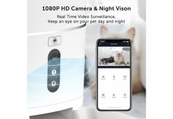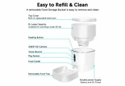 The Automatic Pet Feeder lets you feed your dogs or cats from anywhere in the world. Just fill it with dry kibble and download the free app for your smartphone.