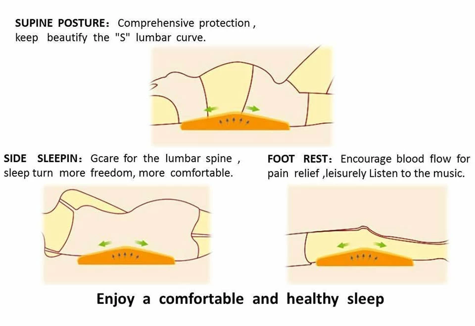 The Back Pain Relieving Pillow provides lumbar support with zero gap joint and evenly dispersed pressure at the waist to help eliminate lower back pain.