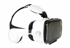 The Bluetooth VR Headset with Earphones immerses you in a virtual reality 3-D experience. Simply insert your smartphone to experience games, videos and movies in three dimensions.