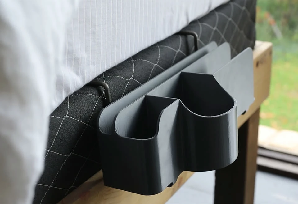 The Deluxe Bedside Organizer is perfect for dorms, apartments and other small spaces. It keeps your nighttime essentials within arm’s reach, and even charges two mobile devices while you sleep.