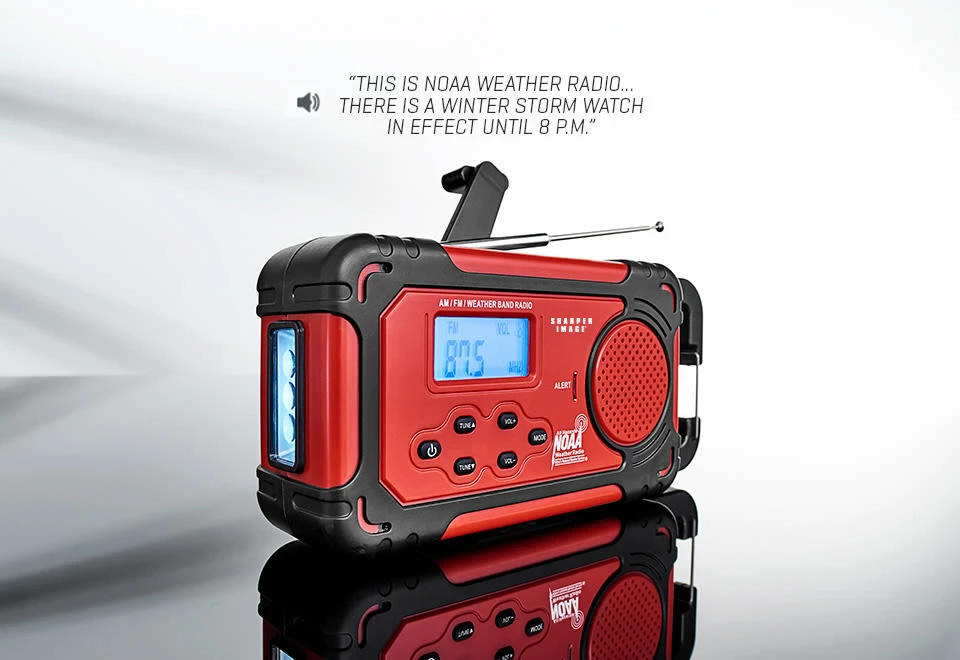Don’t be caught off guard! Be prepared for sudden severe weather with the Emergency Solar Hand Crank Radio. It provides reliable AM/FM reception, plus seven 24-hour NOAA weather stations with automatic emergency alerts to keep you informed of dangerous conditions.