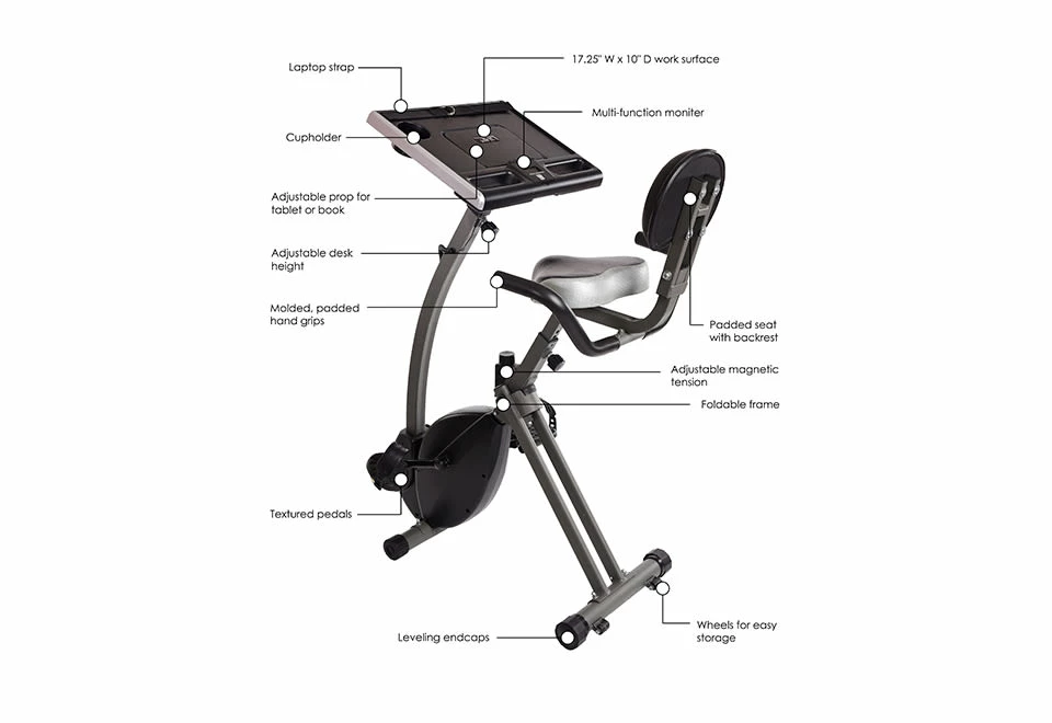 Stay active and productive with the Exercise Bike Workstation. It’s the ideal way to work and stay fit at the same time. When you’re not using it, simply fold the frame and roll it away into a closet or corner.