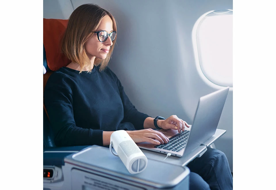 The Mini Portable Air Purifier is the cordless 2-stage filter that safely and quietly cleans your personal air in any office, hotel or travel setting. Use it to reduce common airborne irritants such as dust, pollen, pet dander, smoke and other odors.