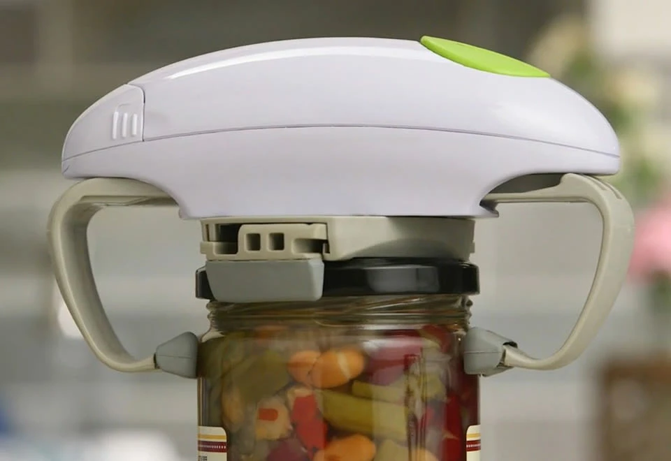 The One Touch Jar Opener automatically opens the toughest, tightest jar lids in seconds. It’s cordless and portable for use anywhere.