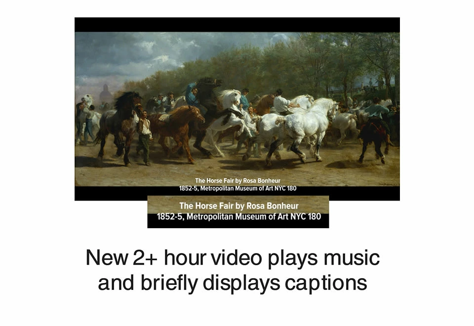 • Includes 500 4K ultra high definition (3840 x 2160) images of paintings displayed as a slide show with optional captions and music