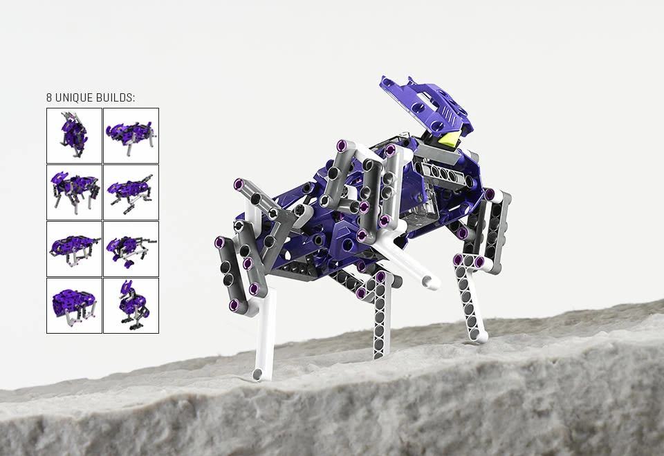 • Build a robotic Terrain Walker, Boar, Mouse, Leopard, Bear, Shrimp, Kangaroo or Monkey (one at a time)