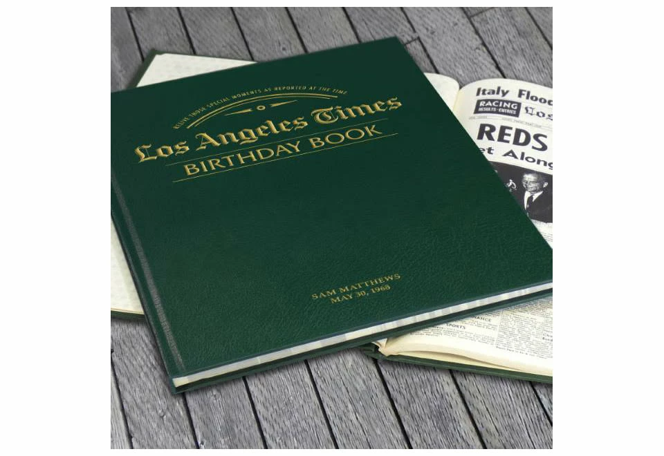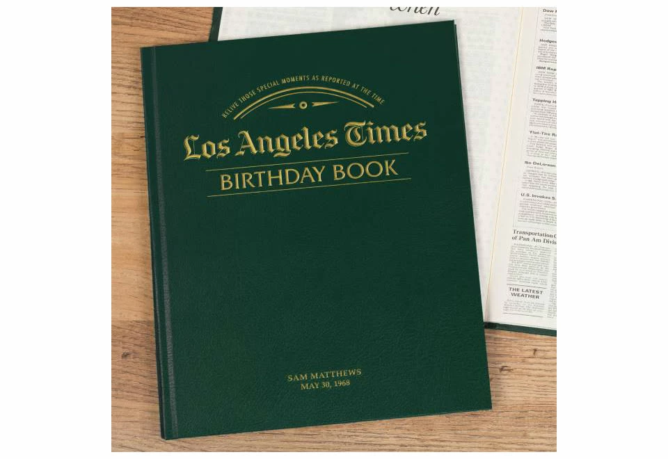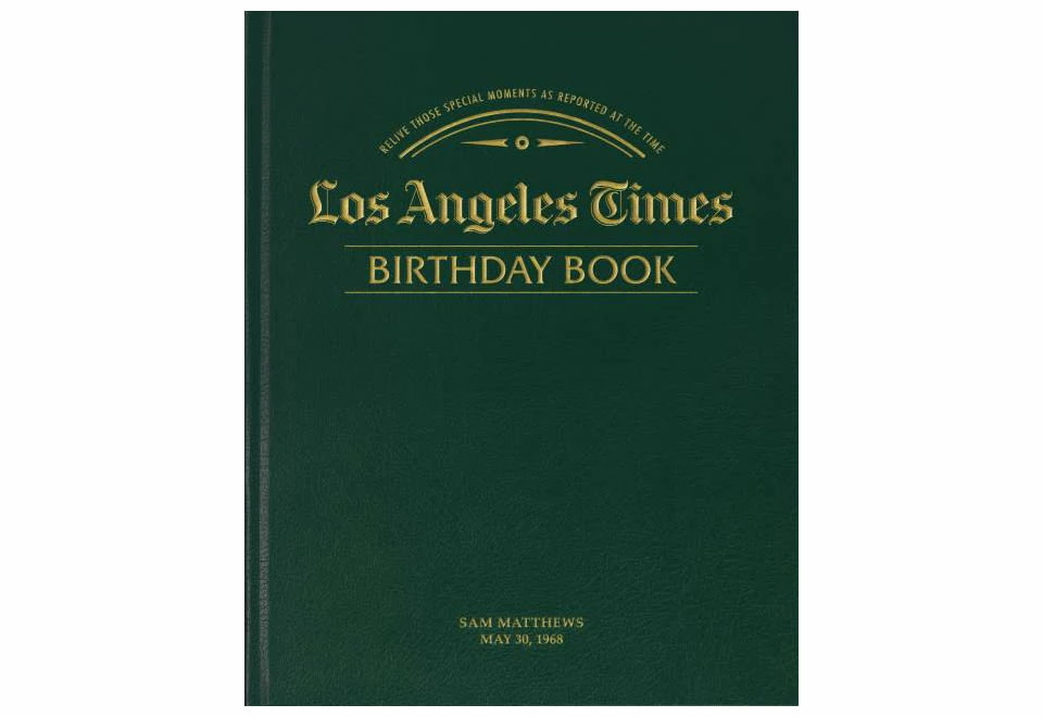 Celebrate your birthday, anniversary or any special date with The Los Angeles Times Personalized Birthday Book. This handsome hardbound volume chronicles your life through the power of newspaper reporting.