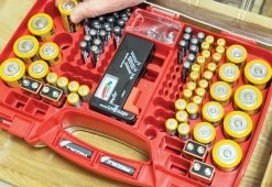 The Ultimate Battery Organizer stores up to 180 batteries, so you can find the ones you need right away. And, it stores the included battery tester to check the life of your batteries.