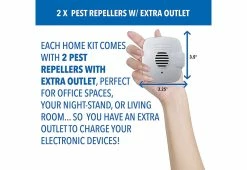• Includes 2 large size repellers (3.25” x 3.5”) with an extra outlet built-in for charging a device