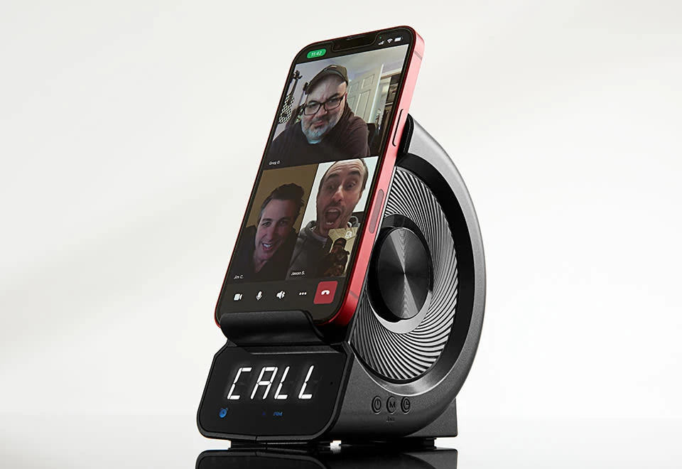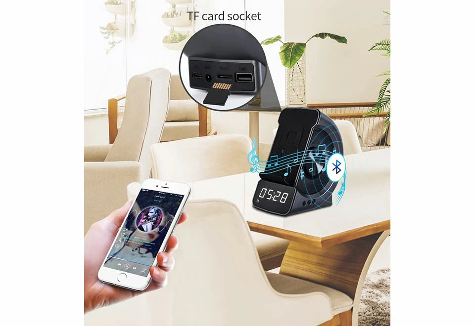 The Wireless Charging Stand and Speaker is the multifunctional device that holds and charges your phone, tells time and streams music. A built-in USB port lets you charge a second device at the same time with your existing charging cable.